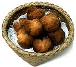 <材料>55個〜60個 小麦粉(薄力粉)1kg ベーキングパウダー 10g 黒砂糖(粉) 600g 卵 300g(大5個) サラダ油 大3 水 150cc <作り方> 1.小麦粉・ベーキングパウダー・黒糖はふるっておく。 2.ボールに1の黒糖・水を入れてかき混ぜる。 この中に卵を割り入れて混ぜ 合わせ、サラダ油も加える。泡立てないように(好みで泡立ててもよい)し て混ぜ合わせ、サラダ油も加える。 3.2に小麦粉を2〜3回に分けて入れて、サックリと混ぜる。 4.3のボールにラップをかぶせ、30分位寝かせる。 5.寝かせた生地を好みの大きさに丸め、150-160度位 の油で揚げる。 6.生地が浮き上がって自然に一方の面が割れて花びら状になり、割れた面がき つね色になったらできあがり。 7.生地をゆるめに作り低温でつくっても美味しい。(好み) |