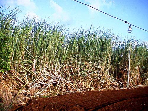台風の塩害をほとんど受けなかったサトウキビ、島の中央部の畑です。